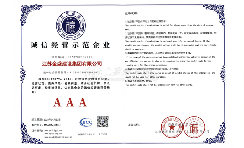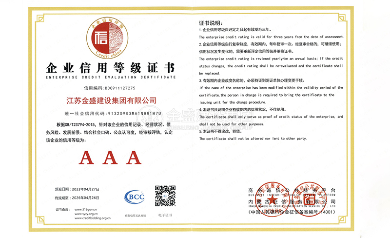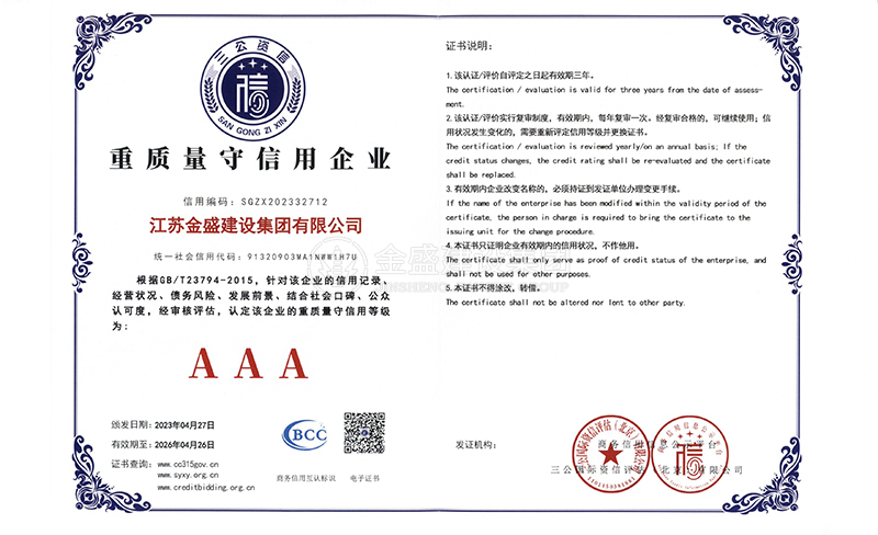 3A級(jí)資信等級(jí)證書